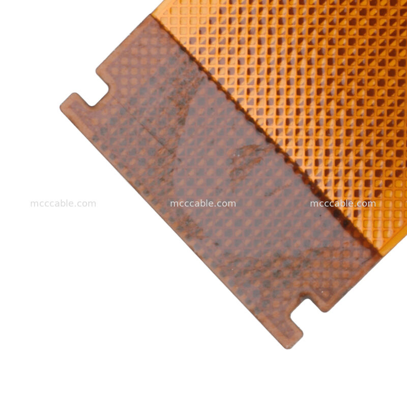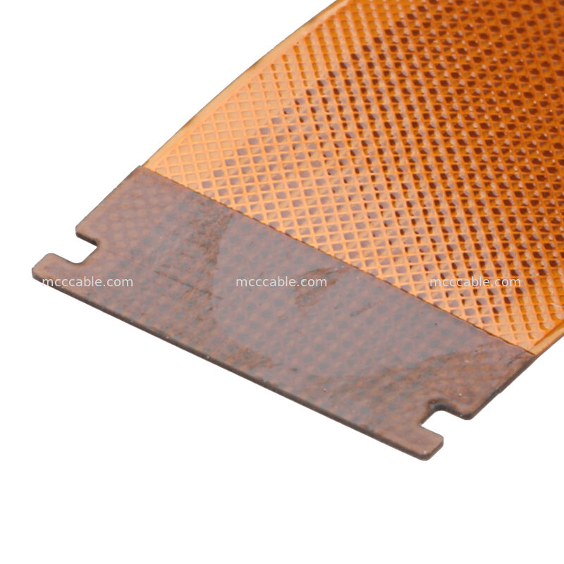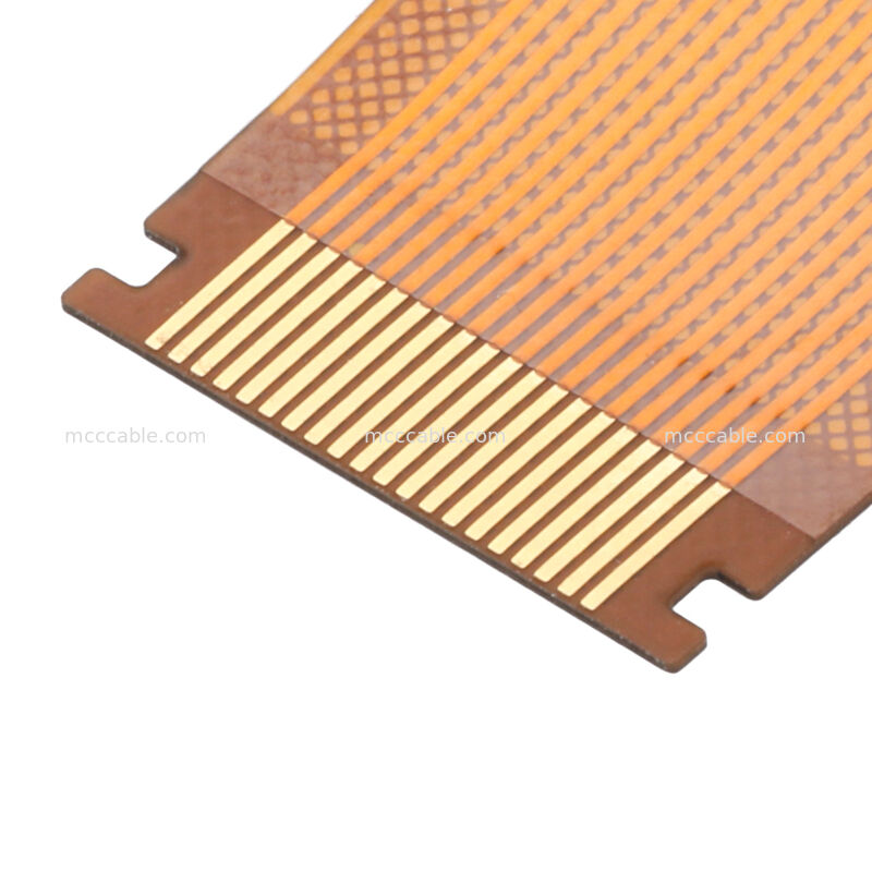 موصلات نحاسية محفورة على ركيزة بولي أميد مرنة، جنبًا إلى جنب مع أطراف ذهبية ENIG
